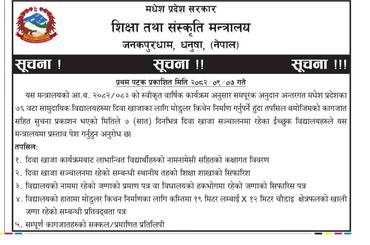 विद्यालयहरुले मोडुलर किचेन निर्माणका लागि प्रस्ताव पेश गर्ने सम्बन्धी सूचना ।